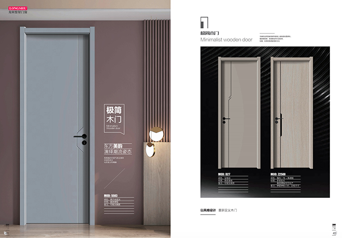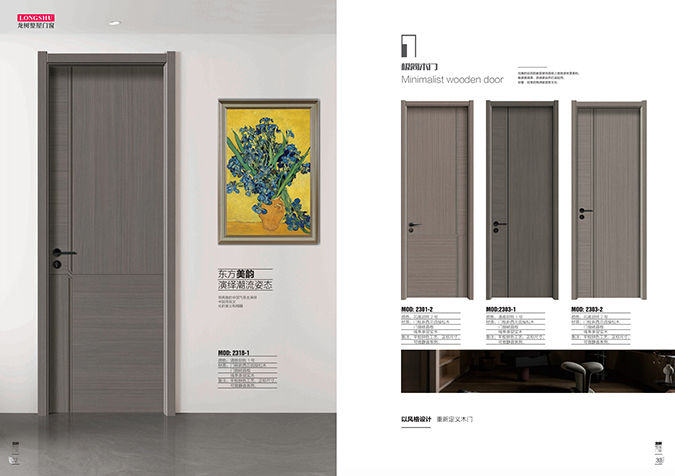龍樹木門通過簡單的線條造型,搭配紋理豐富的面板,多樣顏色互通互換,風格時尚典雅,深受年輕消費群體喜愛。
