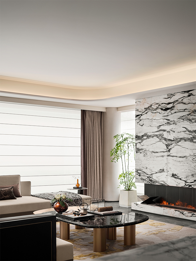 龍樹以大師級的設計理念,將傳統單一的戶門升級,結合整體墻面進行視覺延展。摒棄簡單的堆砌和平淡的擺放,讓美觀與實用、結構與形式統一。