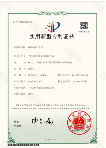 近日,從國家知識(shí)產(chǎn)權(quán)局傳來喜訊,我公司自主研發(fā)的“雙密封靜音木門” 創(chuàng)新成果榮獲國家知識(shí)產(chǎn)權(quán)局頒發(fā)的